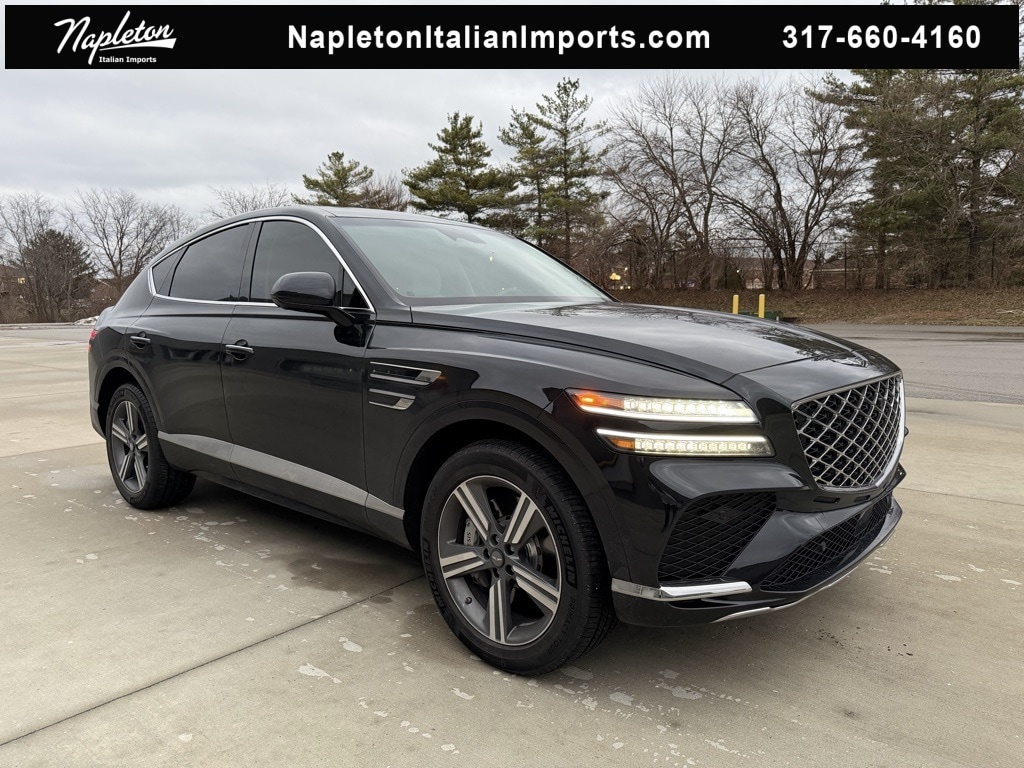 This GV80 Coupe is well equipped with Option Group 01, Android Auto & Apple CarPlay, Heads-Up Display, Heated and Ventilated Front Bucket Seats, Heated rear seats, Heated steering wheel, Nappa Leather Seating Surfaces, Navigation System, Power Liftgate, Power moonroof, Radio: AM/FM/HD Bang & Olufsen Premium Audio, Ventilated rear seats, 18 Speakers, 4-Wheel Disc Brakes, ABS brakes, Adaptive suspension, Air Conditioning, Alloy wheels, AM/FM radio: SiriusXM, Anti-whiplash front head restraints, Auto High-beam Headlights, Auto tilt-away steering wheel, Auto-dimming door mirrors, Auto-dimming Rear-View mirror, Automatic temperature control, Brake assist, Bumpers: body-color, Compass, Delay-off headlights, Driver door bin, Driver vanity mirror, Dual front impact airbags, Dual front side impact airbags, Electronic Stability Control, Emergency communication system: Genesis Connected Services, Exterior Parking Camera Rear, Floating Wheel Cap, Four wheel independent suspension, Front anti-roll bar, Front Bucket Seats, Front Center Armrest, Front dual zone A/C, Front reading lights, Fully automatic headlights, Garage door transmitter: HomeLink, Genuine wood console insert, Genuine wood dashboard insert, Heated door mirrors, Heated front seats, Illuminated Door Scuff Plates, Illuminated entry, Knee airbag, Low tire pressure warning, Memory seat, Occupant sensing airbag, Outside temperature display, Overhead airbag, Overhead console, Panic alarm, Passenger door bin, Passenger vanity mirror, Power door mirrors, Power driver seat, Power passenger seat, Power steering, Power windows, Radio data system, Rain sensing wipers, Rear air conditioning, Rear anti-roll bar, Rear reading lights, Rear seat center armrest, Rear side impact airbag, Rear window defroster, Remote keyless entry, Security system, Speed control, Speed-sensing steering, Speed-Sensitive Wipers, Split folding rear seat, Spoiler, Sport steering wheel, Steering wheel memory, Steering wheel mounted audio controls, Tachometer, Telescoping steering wheel, Tilt steering wheel, Traction control, Trip computer, Turn signal indicator mirrors, Variably intermittent wipers, Ventilated front seats, and Wheels: 20" Dark Gray Matte Sport Alloy.